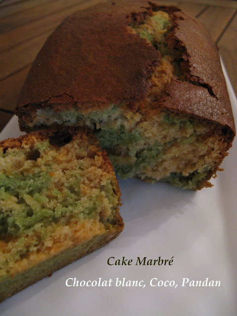 Un cake extra moelleux et très fondant. Le contraste entre l'amertume légère (très légère) du pandan et la douceur lactée du chocolat blanc m'a plu, quand à l'alliance coco/ pandan, elle se révèle fabuleuse et au final l'association des 3 est une véritable explosion en bouche!