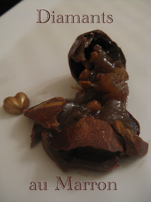 Il y des parfums que je me dois de faire parce que tout le monde en raffole, et s'il y a une chose que l'on ne me pardonnerait pas d'oublier, c'est bien de ne rien avoir préparé à base de crème de marrons... Légèrement aromatisées au Rhum, ces bouchées se révèlent être de vrais bijous!