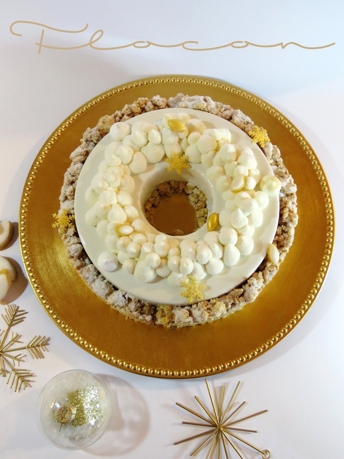 Placer au congélateur au moins 2 heures et démouler très délicatement. Saupoudrer d'un voile de sucre neige et  déposer la couronne obtenue autour de l'entremets déjà glacé.